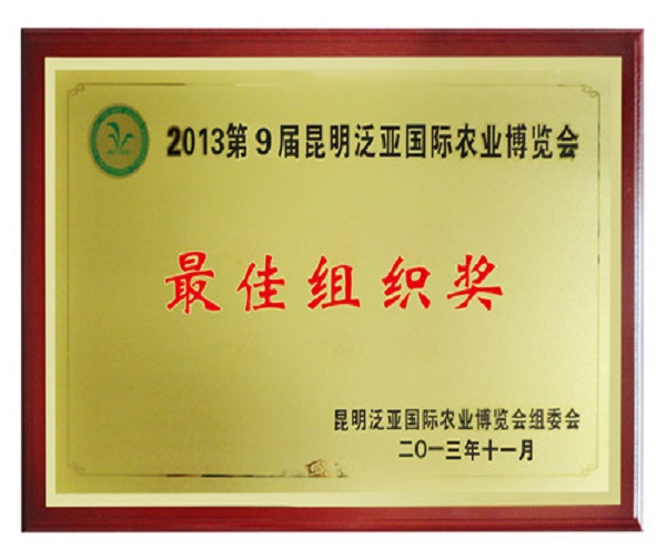 2013第9屆昆明泛亞國(guó)際農(nóng)業(yè)博覽會(huì)獲獎(jiǎng)證書