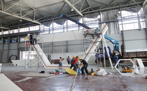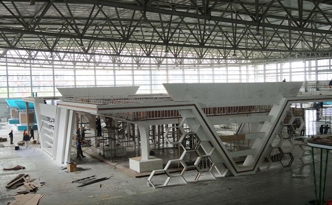 主要材料:木板、方鋼、燈片、有機(jī)片、LED燈、環(huán)保阻燃地毯、玻璃展柜、環(huán)保阻燃乳膠漆