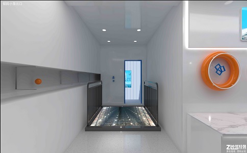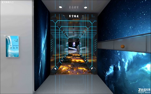 利用投影儀將精美絕 倫的動畫及幾十款互動游 戲投影到地面,在具有觀 賞性的同時兼具可玩性, 兩側(cè)墻壁利用玻璃反射及 延展性燈帶產(chǎn)生更好的視 覺效果。