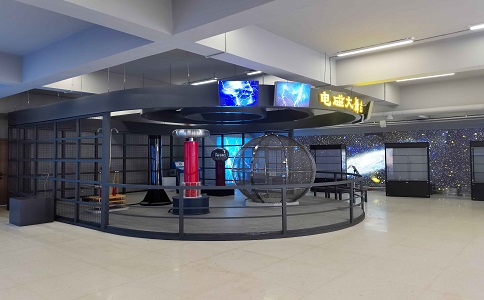 電磁大舞臺主要有雅各布天梯、 怒發(fā)沖冠、沿面放電等項目,結(jié)合 了聲光電的立體空間感和舞臺劇的 炫麗感,營造出一個神奇的科學(xué)氛 圍。這一系列有驚無險的電磁現(xiàn)象 將著名科學(xué)家富蘭克林、法拉第、 特斯拉等人的歷史性經(jīng)典實驗加以 生動再現(xiàn)。