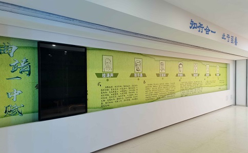 進門左手邊是一塊滑 軌屏,按由遠到近的方式 介紹了整個曲一中110年的校史。